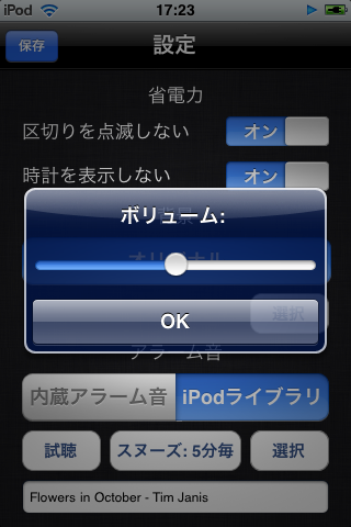 アラーム音には、お好みの曲をiPod ライブラリから選んで設定しましょう。アラームのスヌーズ間隔は、1/3/5/10分毎のオプションから選べます。